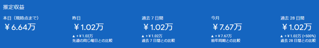 ちなみに昨日からはじめてこのブログにGoogleのアドセンス広告を貼り、収益化してみたのですが、なんと初日で、1.02万円、2日目の今日、現在20時の時点で、6.64万円!笑