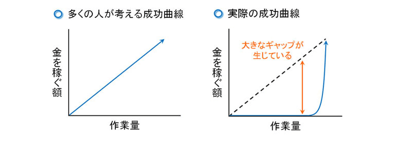 ほとんどの人がお金を稼ぐことに一次関数的な考えを持っている為、