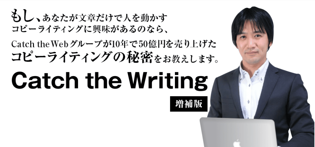 Catch the Webグループで10年で50億円を売り上げたコピーライティングのノウハウをまとめて提供してくれているのが、「Catch the Writing」という動画講座のコンテンツになります。