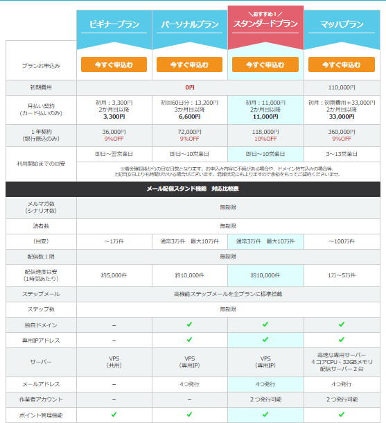 一番安いプラン(ビギナープラン)でも、約1万通ほど配信することができます。