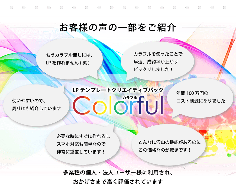 LPに関しては僕は全て自分で「カラフル」で制作しています(^_-)-☆