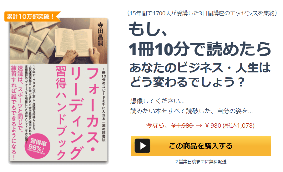 1冊10分のスピードを手に入れる1流の読書法をこちらからご覧ください。
