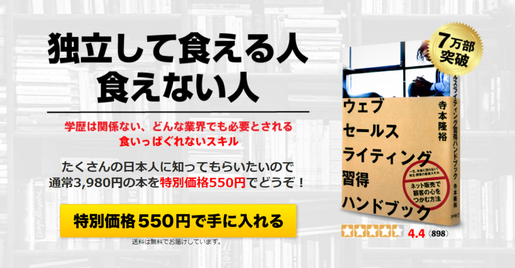 僕も読んでいますが、このウェブセールスセールスライティング習得ハンドブックはめちゃくちゃ勉強になりますので、是非読んでみて下さい(^^)/