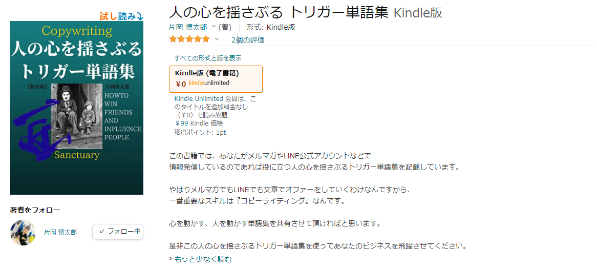 現在、¥99で人の心を揺さぶる トリガー単語集 Kindle版も販売していますので、是非ダウンロードしてください(^^)/