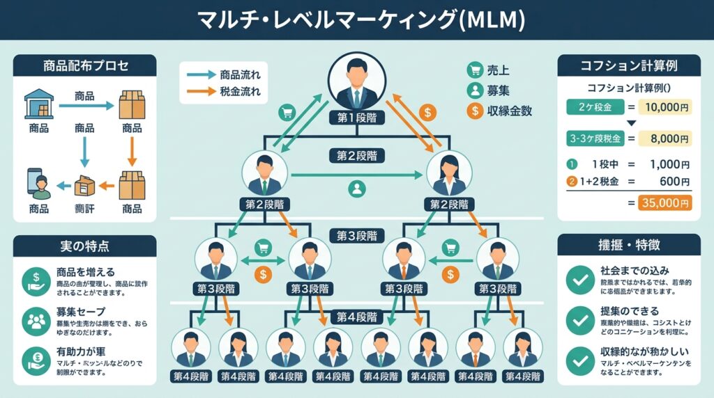 MLMビジネスとは、商品やサービスを販売しながら、自分の組織を広げていくことで収入を得るビジネスモデルです。