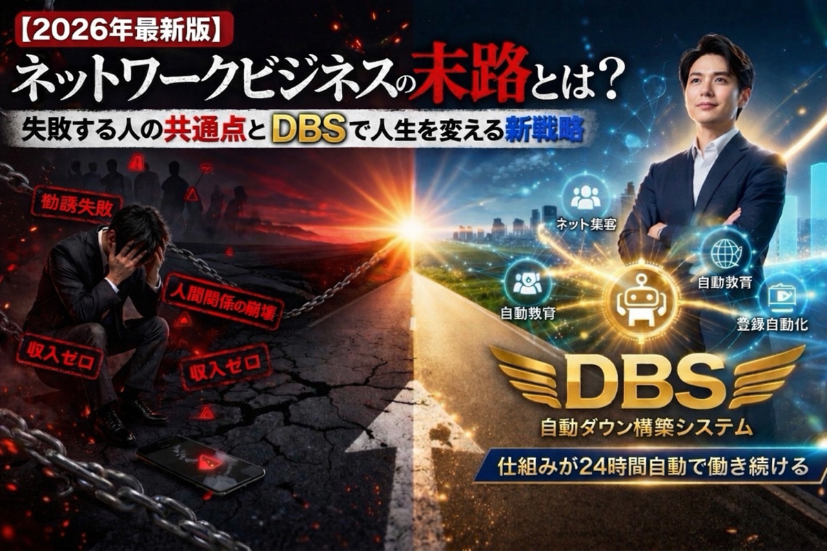 さらに、今注目されているDBS(自動ダウン構築システム)という新しい仕組みによって、営業や勧誘に頼らず収入を生み出す方法についても詳しくお伝えします。