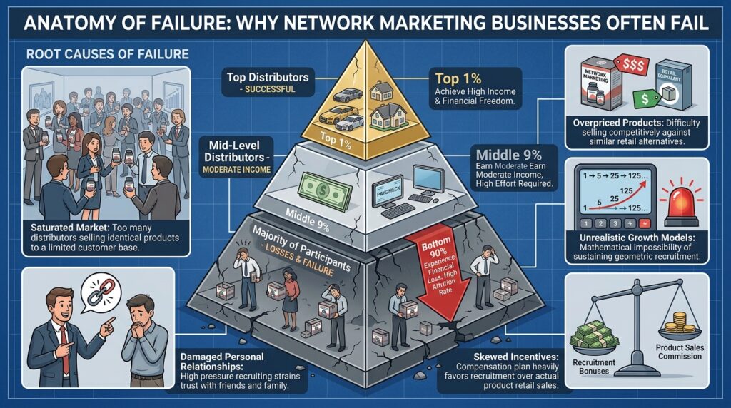 本記事では、ネットワークビジネスのリアルな末路を包み隠さず解説しながら、なぜ失敗するのか、そしてどうすればその末路を回避できるのかをわかりやすく解説していきます。