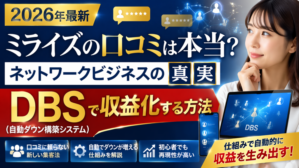 【2026年最新】ミライズの口コミは本当?ネットワークビジネスの真実とDBS(自動ダウン構築システム)で収益化する方法