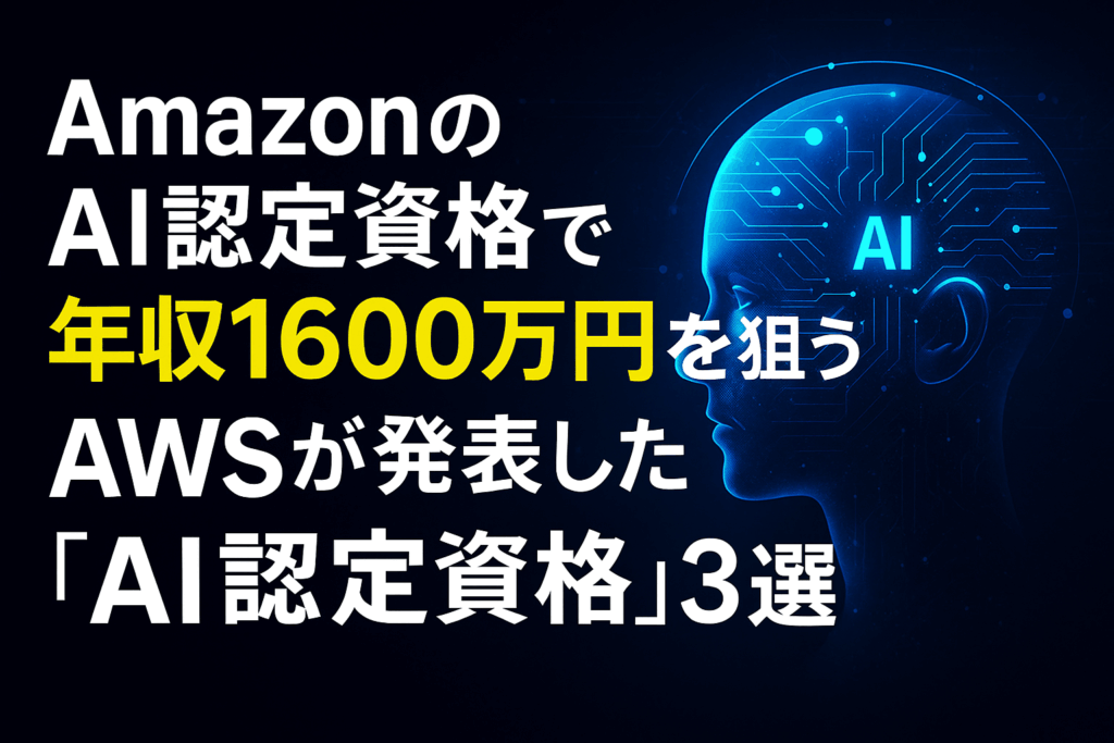 Amazonが発表した最新のAI認定資格3種を徹底解説。年収1600万〜3400万円級のAIキャリアを実現する資格取得ロードマップや求人市場データも紹介。無料で始められる学習方法付き。