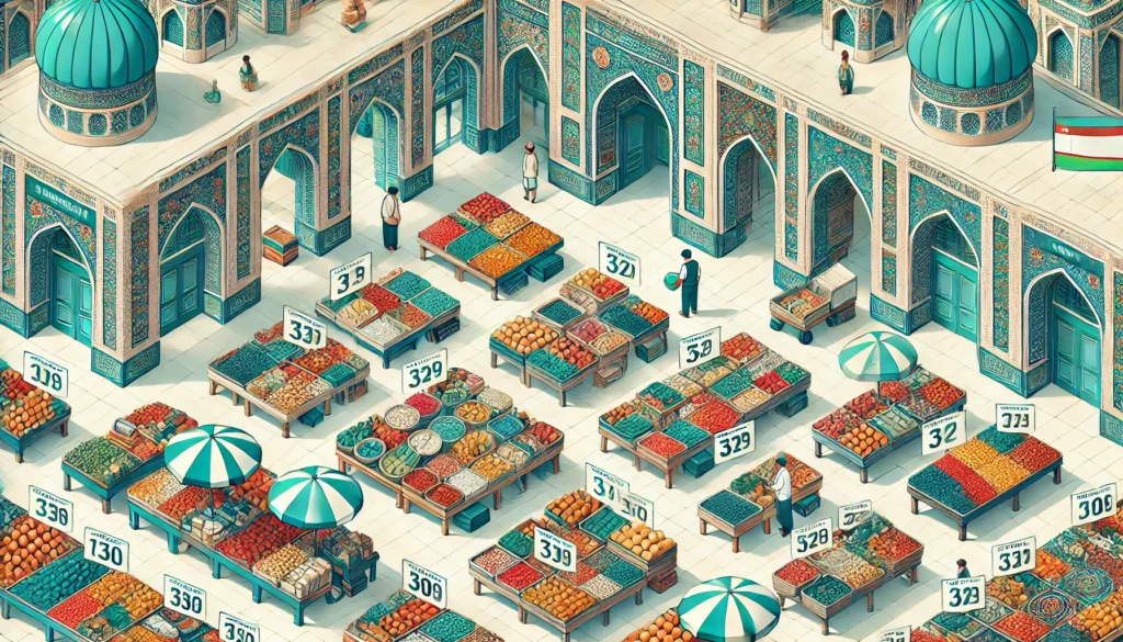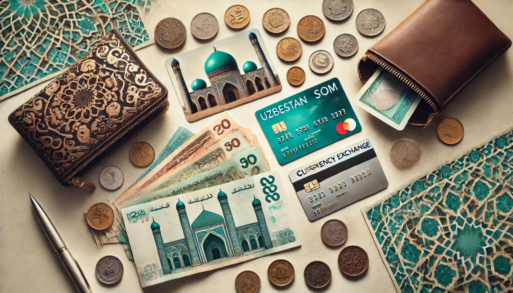 通貨は スム(UZS)。現金が基本ですが、都市部ではクレジットカードも利用できます。