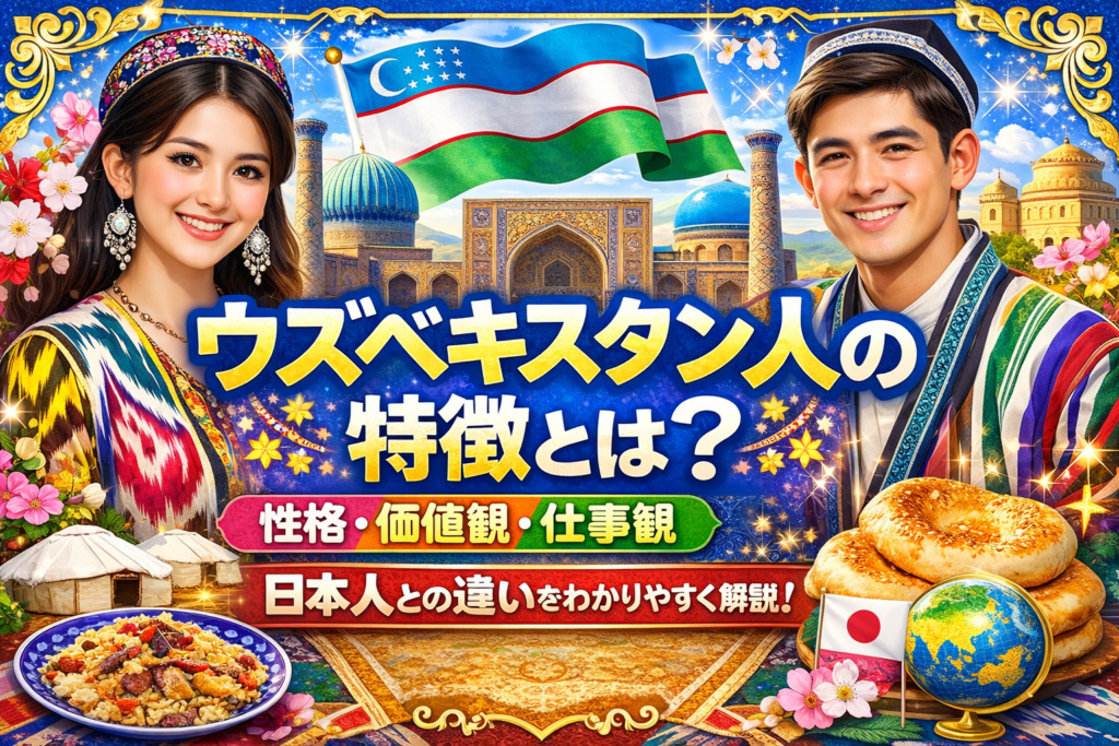 ウズベキスタン人の特徴を性格・価値観・仕事観・人間関係から徹底解説。日本人との違いも比較しながら、ウズベキスタン人を深く理解できる情報をわかりやすくまとめています。